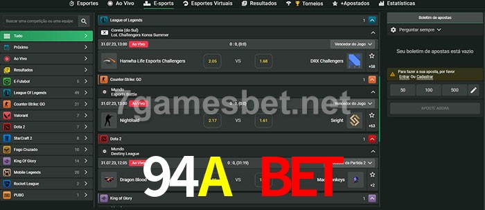 O 94A Bet oferece uma grande seleção de opções de apostas em e-sports com probabilidades competitivas